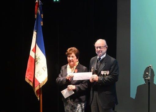 Remise d’un don de 300 euros au comité par le président du club des véhicules anciens, « l’auto rétro alréen), M. Jean-Claude Bietrix