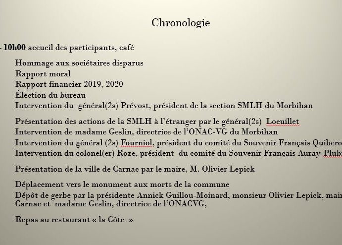 Le vendredi 12 novembre 2021, à l’auditorium Terraqué de Carnac, s’est tenue l’assemblée annuelle du comité du pays d’Auray. A cette occasion, le bureau a été renouvelé , la liste des membres est indiquée ci-dessous.