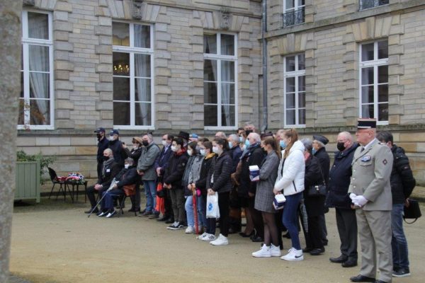 Manifestation du 11 mars 2022 dans la cour d’honneur la préfecture de Vannes en mémoire de l’attentat du Drakkar