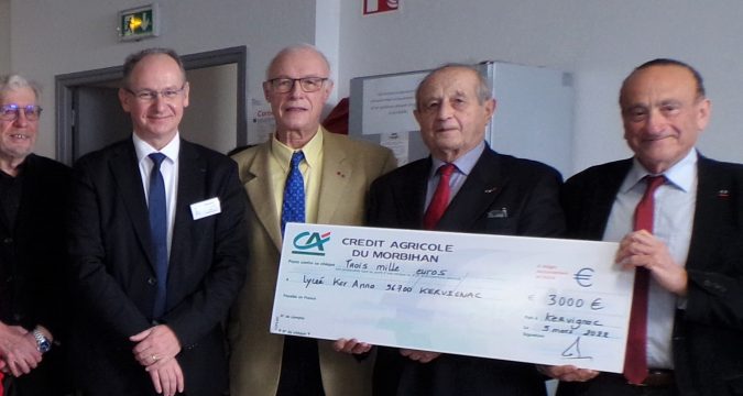Lors de la journée portes-ouvertes du Lycée 05 mars 2022, le général (2 s) Philippe Prévost président départemental et c.v(h) Giy Sinel président du comité ont remis le chèque à   Monsieur Le Vouedec, directeur du Lycée.