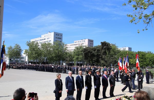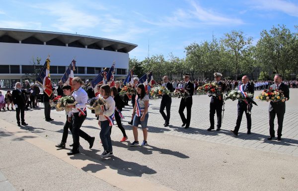 Les autorités civiles et militaires, précédées par d’élèves du conseil municipal enfants, ont déposé des gerbes de fleurs au pied du monument aux morts.