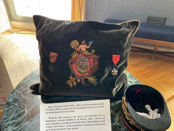 Fin avril 1949 paraissait au journal officiel le décret attribuant à la ville de Lorient la Légion d’Honneur et la croix de guerre avec palmes en reconnaissance du martyre de la ville. Un an plus tard celle-ci recevait sa décoration des mains de M Vincent Auriol, président de la république, lequel rendait hommage aux combattants et à la population.