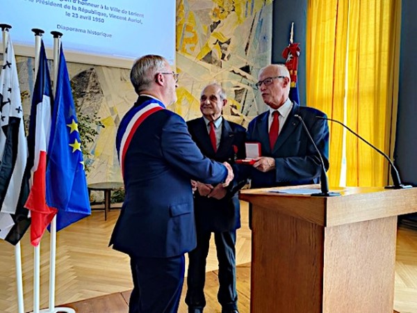 Ensuite, le président Prévost accompagné du président Sinel a remis au maire de Lorient la médaille de la SMLH.