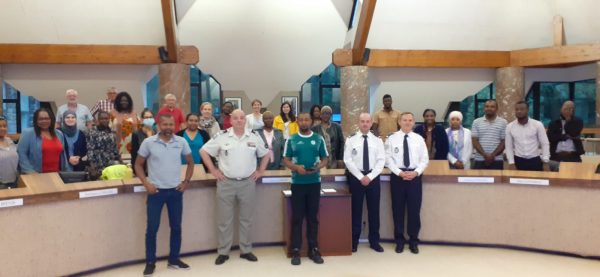 vue des auditeurs et des conférenciers, Adjoint DMD et police - La 8ème séance qui clôt l’ensemble des exposés a été l’occasion de présenter par madame Anne-Marie Duro les beaux arts en France ; puis l’ensemble des auditeurs présents, soit une trentaine se sont vus remettre leur attestation dans la salle bibliothèque au niveau des drapeaux. Une photo de groupe de l’ensemble des participants a été prise par la presse. Un cocktail offert par le conseil départemental a clos cette série d’exposés.