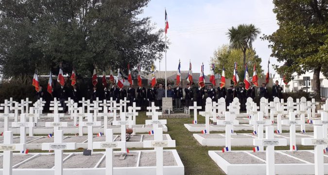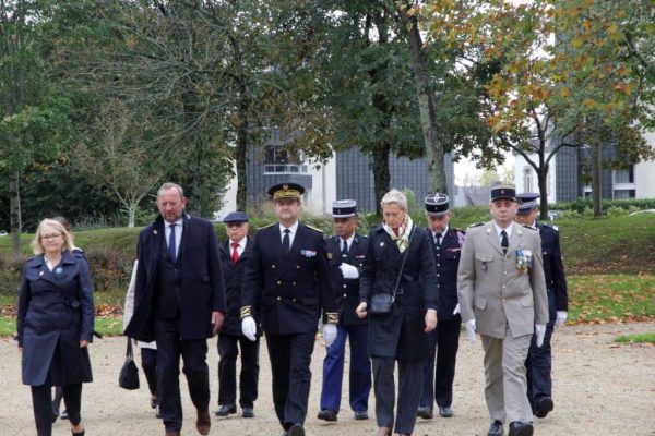 Commencé par le lever des couleurs et le dépôt des gerbes devant le carré militaire de Calmont, le tour des lieux de mémoire du 1er Novembre à Vannes s’est poursuivi par un arrêt au plateau de la Garenne, puis un autre devant le monument aux morts du cimetière de Boismoreau, avant de s’achever devant la plaque commémorative dédiée aux deux cheminots résistants morts en déportation.