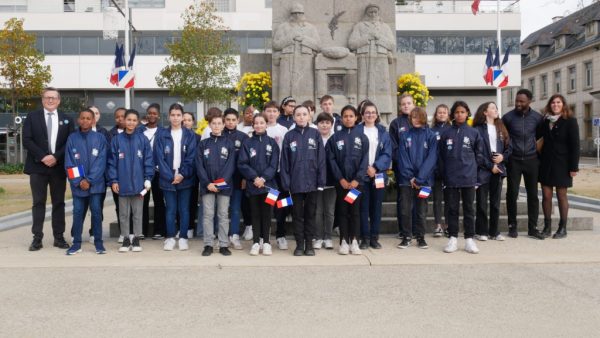 Après la traditionnelle remise de médailles à des militaires en activité : Légion d ‘ Honneur, Médaille Militaire, Ordre National du Mérite des élèves lorientais de l’ école primaire du Bois du Château et les Cadets de la Sécurité civile du collège de Tréfaven ont lu des messages .