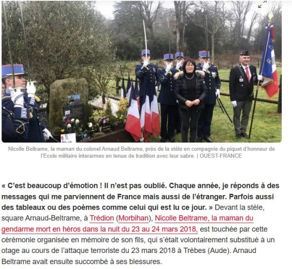 À Trédion (Morbihan), un hommage a été rendu au colonel Arnaud Beltrame ce samedi 11 mars 2023. Une cérémonie organisée en cette Journée nationale dédiée des victimes du terrorisme. Pour ne pas oublier.