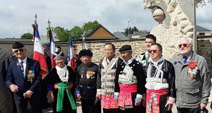La célébration du 70ème anniversaire des combats de Dien-Bien -Phu s’est déroulée à Lauzach, organisée par Jacques Joly – membre du bureau et ancien Délégué Général du Souvenir Français du Morbihan- avec une solennité particulière , en présence, pour la première fois , des représentants de la Communauté Mong , installée en Ille et Vilaine (il n’y en a pas dans le Morbihan) et avec 44 drapeaux le long des monuments de Corée et d’Indochine , aux ordres de notre porte-drapeau Jean -Pierre Tessier
